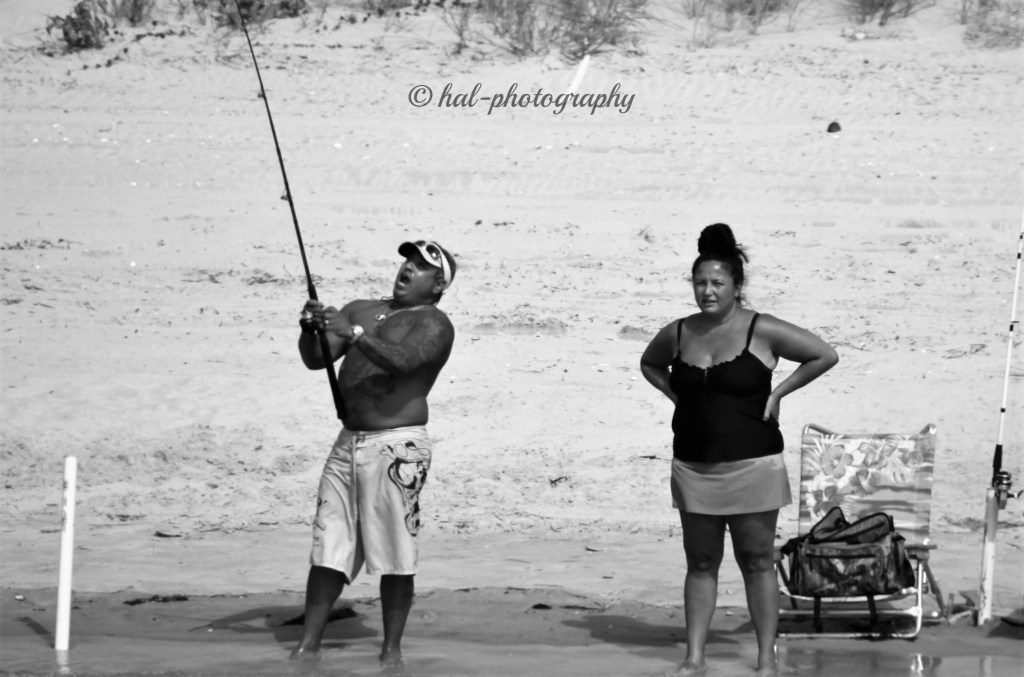 “My rod is in the sand, I don’t see why holding onto your rod will make the fish come sooner…so I am fishing smarter not harder honey!”